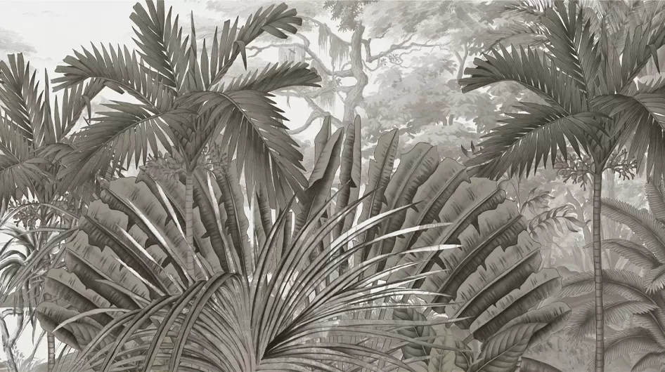 An exuberant nature. A very drawn vegetal pattern declined here in a more neutral gray version