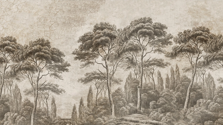 Let’s transport our interior to the Roman countryside with this romantic landscape of cypresses and umbrella pineswhose majestic beauty has inspired artists since Antiquity.
