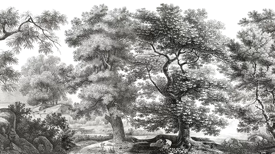 Based on19th century engravings, these woodland landscapes suit all styles of interiors, from the most baroque to the most minimalist.